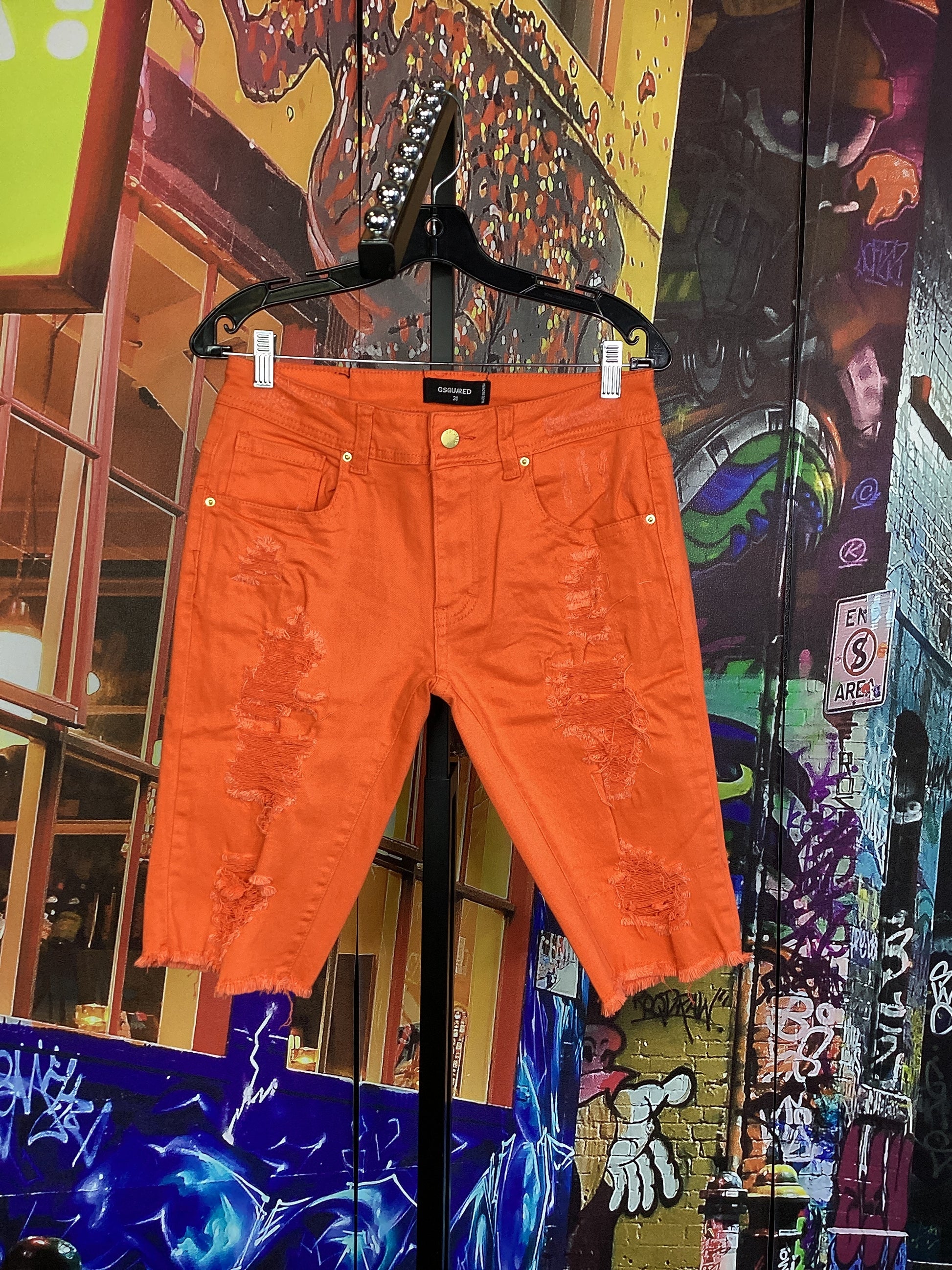 JC Orange Distressed Shorts